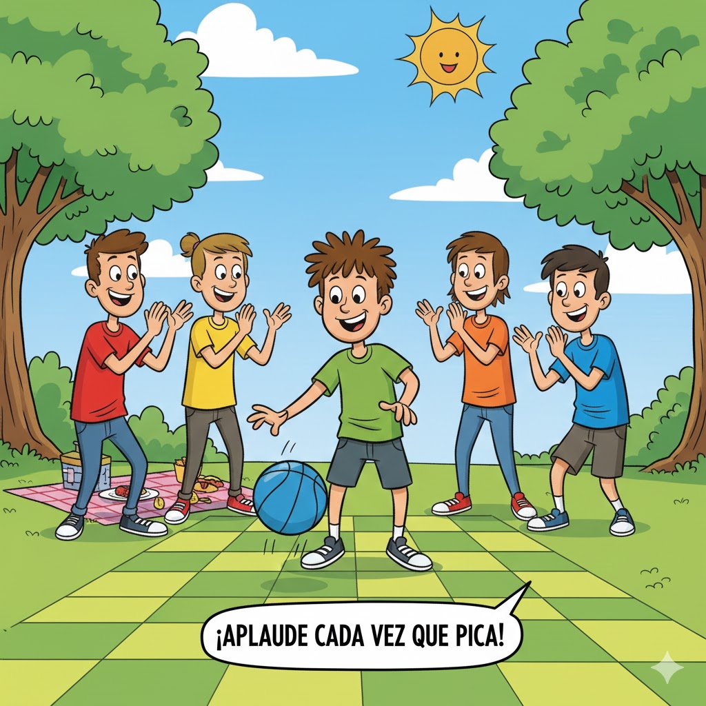 Hacer palma cada vez que la pelota pique, cuidado no aplaudir sin que pique.